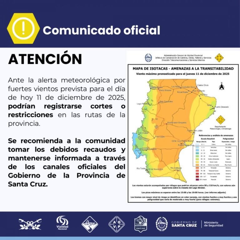 Recomiendan precaución ante fuertes vientos y tramos comprometidos