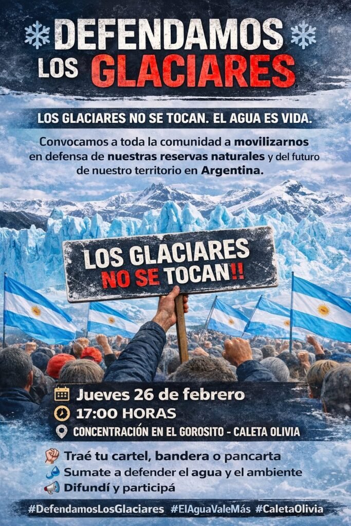 La organización Acción Plurinacional inició este miércoles una serie de protestas en defensa de la Ley de Glaciares. En Caleta Olivia, vecinos y vecinas autoconvocados se concentrarán mañana jueves a las 17 horas en el monumento El Gorosito, en el centro de la ciudad, en defensa del agua y la vida, en el marco del […]
