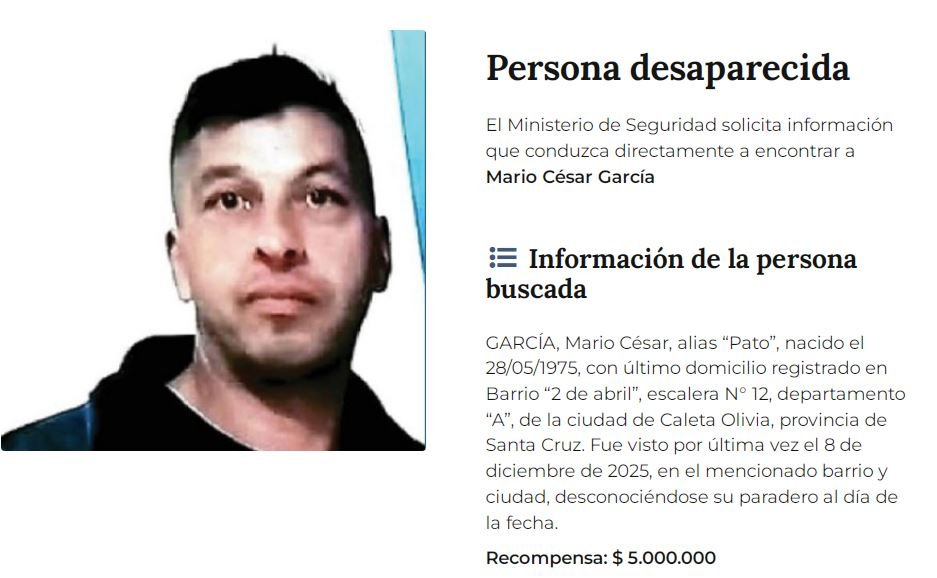 Ofrecieron una recompensa de $5 millones por datos sobre un hombre que desapareció hace dos meses en Caleta Olivia