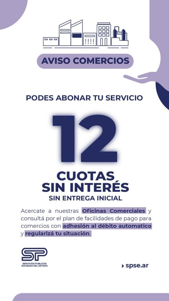En el marco de la Emergencia Comercial declarada mediante la Ley Provincial 3996/2026, Servicios Públicos Sociedad del Estado (SPSE) anunció el lanzamiento de un programa de facilidades de pago diseñado específicamente para aliviar la situación financiera de los usuarios comerciales en toda la provincia. La medida busca sostener la actividad económica local, permitiendo que los […]
