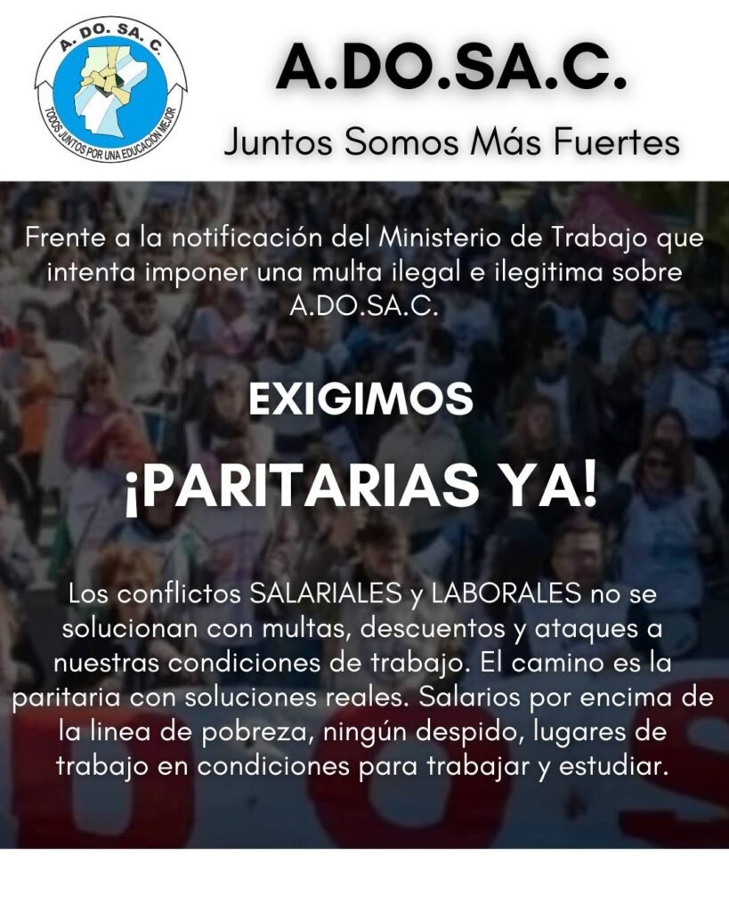 Comunicado de ADOSAC: multas y descuentos NO, paritarias con soluciones reales SI