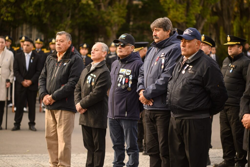 La ceremonia estuvo encabezada por el gobernador Claudio Vidal, acompañado por el jefe de Policía de la Provincia, comisario general Diego Agüero, y contó además con la presencia del jefe de Gabinete de Ministros, Pedro Luxen; integrantes del Poder Ejecutivo Provincial; autoridades de las fuerzas armadas y de seguridad; representantes del Servicio Penitenciario Provincial; y como invitados especiales los veteranos de guerra, entre ellos, miembros del Centro de Veteranos de Guerra de Malvinas “Soldado José Honorio Ortega” y de la Comisión Provincial de Malvinas.