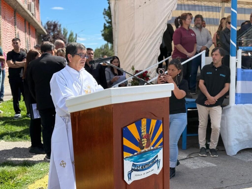 El gobernador de Santa Cruz, Claudio Vidal, encabezó, este jueves al mediodía, el acto central por el 78° Aniversario de Los Antiguos, que se desarrolló frente al Palacio Municipal, sobre la avenida 11 de Julio, con una importante participación de vecinos y autoridades.