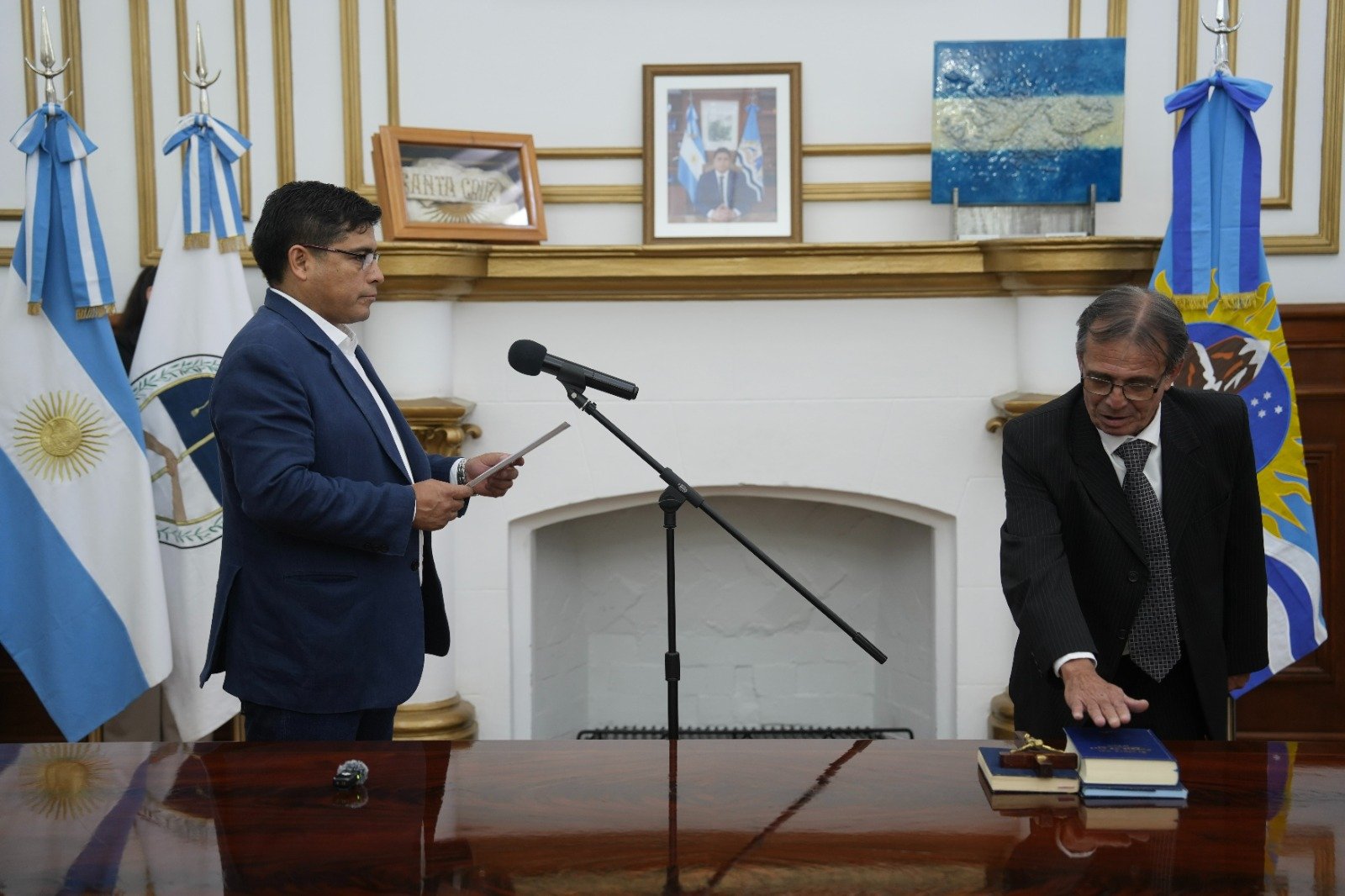 Durante la ceremonia que tuvo lugar esta tarde en el Salón Blanco de Casa de Gobierno, el mandatario santacruceño, acompañado por su gabinete, tomó juramento a Ezequiel Verbes como ministro de Economía, Finanzas e Infraestructura; y a Juan Mata como ministro de Trabajo, Empleo y Seguridad Social.