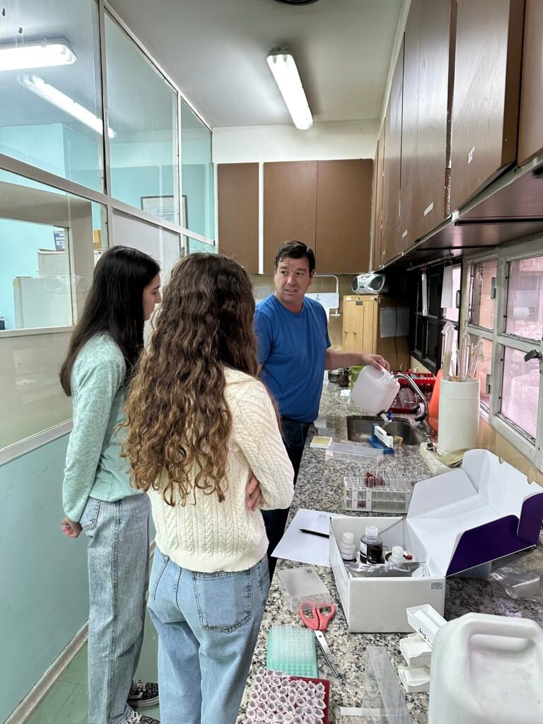 Durante la jornada fueron recibidas por el médico veterinario Germán Beltritti, responsable del Laboratorio de Sanidad Animal del CAP, quien les explicó los distintos análisis que allí se realizan y las técnicas empleadas en cada caso, compartiendo detalles sobre los procesos y el trabajo cotidiano del área.