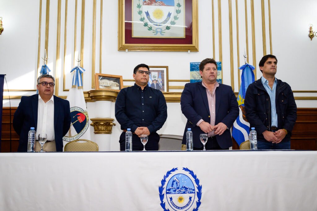 El gobernador Claudio Vidal, acompañado por los funcionarios Pedro Luxen, Marcelo De La Torre y Hugo Garay, entregó 25 títulos de propiedad en el Salón Blanco de Casa de Gobierno.