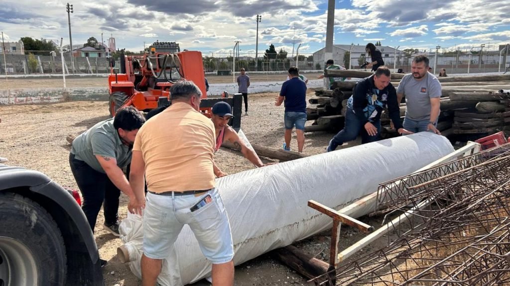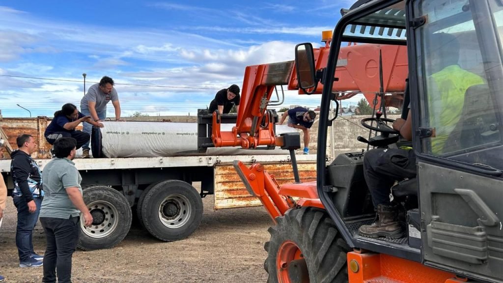 El Municipio de Caleta Olivia acompañó a la institución deportiva Estrella Norte en una jornada de trabajo destinada a la descarga de los paños de césped sintético que serán utilizados para la cancha, una obra de gran importancia para el desarrollo deportivo y social de la comunidad.