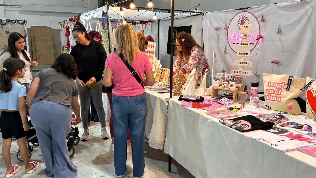 En los gimnasios Enrique Mosconi, Alejandro Hilgemberg y Daniela González en Caleta Olivia se instalaron 98 emprendedores del grupo EmpredeArte, stands de instituciones, rincón infantil y puestos de ventas de elaboraciones gastronómicas.