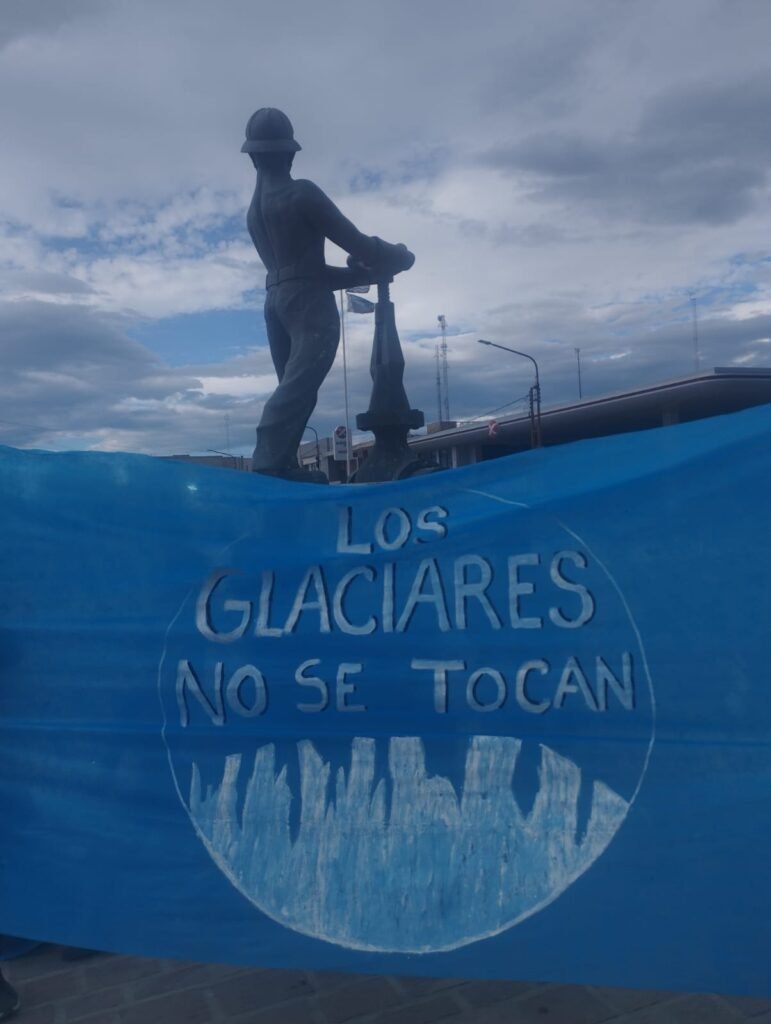 Vecinos autoconvocados se reunieron en el monumento al Obrero Petrolero, o, donde exhibieron carteles y pancartas con el lema “La Ley de Glaciares no se toca”, expresando su rechazo a cualquier intento de modificación de la normativa vigente.