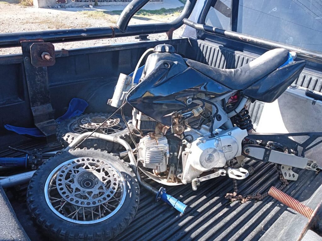 No obstante, en el transcurso de las actuaciones y a partir de información obtenida durante el procedimiento, el personal interviniente se trasladó hacia un sector ubicado a varios kilómetros de la zona urbana, donde finalmente se logró ubicar el motovehículo sustraído, el cual se encontraba desarmado.