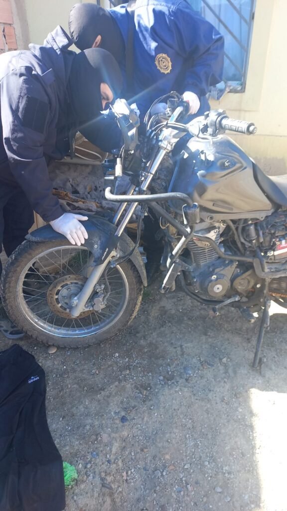 Con la orden judicial emitida, se procedió al operativo en horas de la tarde de este martes. En la casa de calle Calafate se logró dar con la moto involucrada en la causa, y que a su vez resultaría ser el rodado sustraído en hospedaje “El Ancla” a una persona de nacionalidad extrajera que se encontraba momentáneamente en esta ciudad.