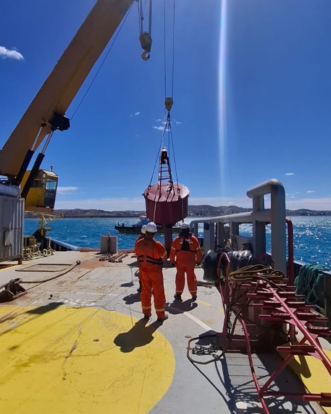 Por parte de la empresa TERMAP estuvieron presentes el superintendente marítimo Alejandro Giorgi y el gerente general Daniel Zucas. Cabe señalar que esta intervención fue posible luego de más de tres años, tras el arrastre de la torre y las cadenas por una marejada. Durante este período se avanzó en la recuperación de la estructura y en un proceso de reparación y refuerzo que demandó tiempo, planificación y un trabajo coordinado entre distintos equipos técnicos y empresas especializadas.